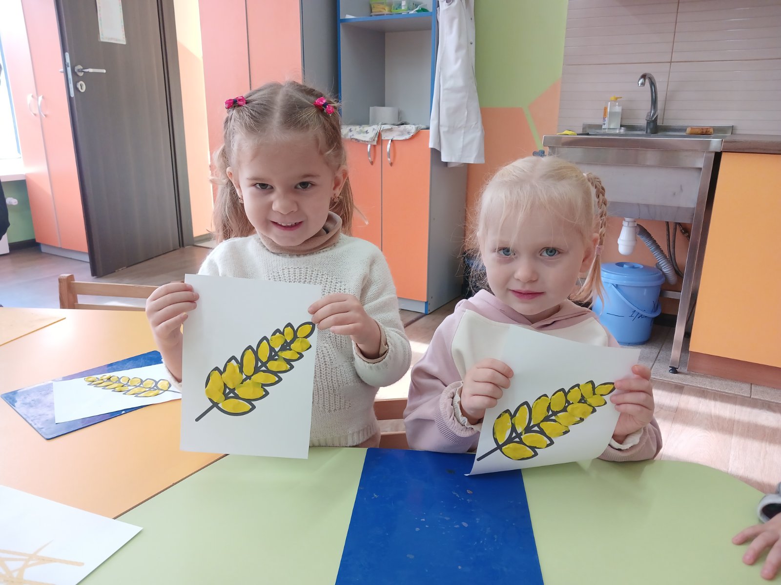 Також ми провели цікаві тематичні заняття, де через аплікації та малюнки вчилися бережливому ставленню і створювали образи колосків, пшеничних полів і щасливого короваю.