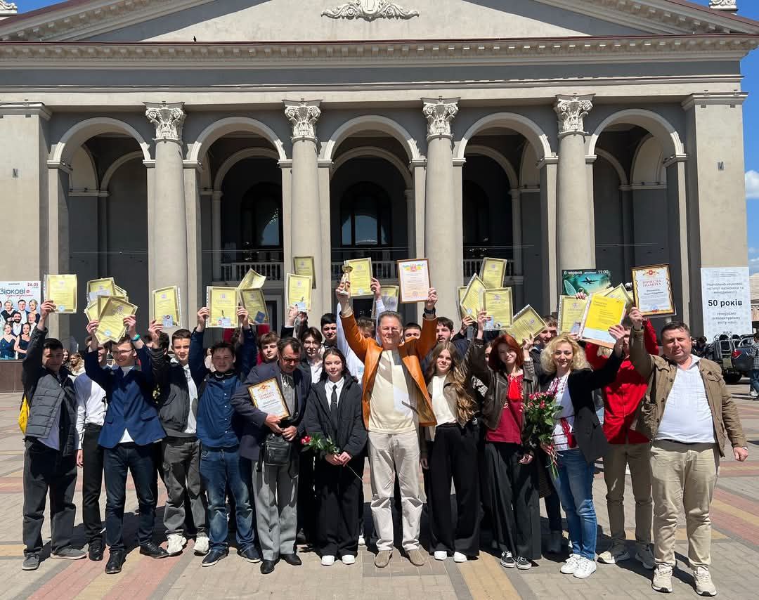 На сцену піднялося 20 наших "манівців", які посіли перше місце в обласному етапі конкурсу-захисту МАН. Усього ми маємо 112 перемог! Вітання, оплески, відзнаки — усе це було в честь усіх переможців! Гордість нашої громади!