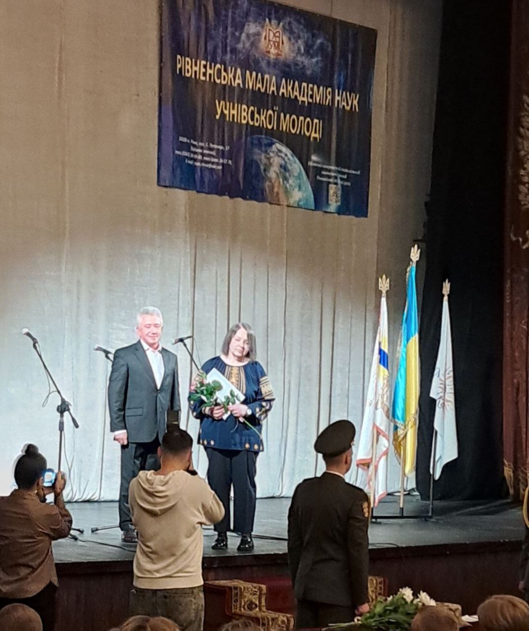 Відзнаки за підготовку учнів-переможців на сцені отримали 8 рівненських освітян: Олег Желюк, Роман Данилюк, Анатолій Шарабура, Оксана Бондаренко (РЛ "Елітар"), Катерина Попова (РЛ № 19), Тарас Галатюк (РГ № 6), Любов Сень (РЛ №13), Ольга Вознюк (РЛ № 27). Усім іншим педагогам-наставникам, які підготували переможців, теж підготовлено відзнаки від РМАНУМ.
