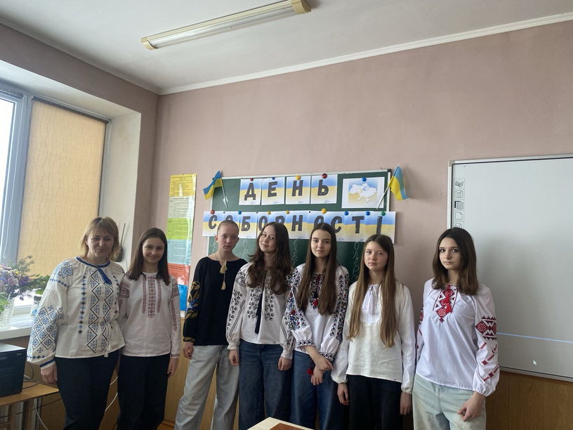 22.01.2026 року в Рівненській гімназії № 17 з нагоди відзначення 107-ої річниці проголошення Акту Злуки Української Народної Республіки та Західноукраїнської Народної Республіки класні керівники разом з учнями 1-9 класів провели тематичні заходи. А саме: