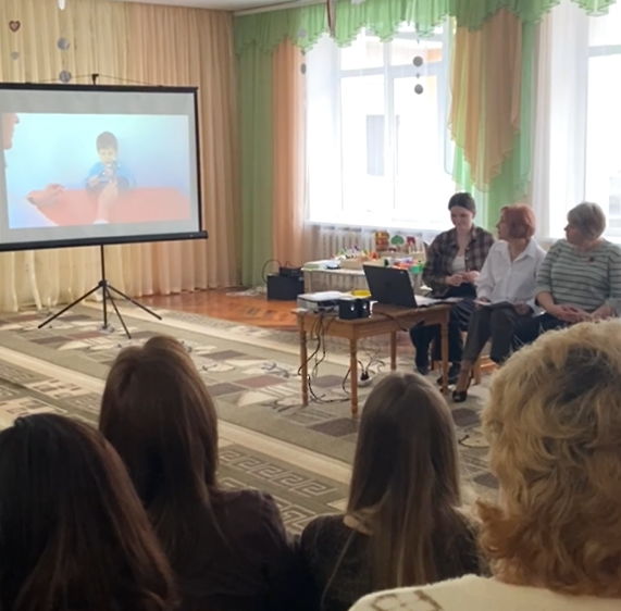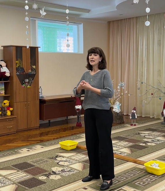 Вчитель-логопед О.Царук представила відеопрезентацію «Формування просторових уявлень у дітей з ООП засобами ігрової діяльності», акцентуючи увагу на значенні просторових понять для формування мовлення та пізнавальних процесів у дітей. Далі відбулася динамічна розрядка – гра «Вперед-назад» (Л. Гордійчук), яка продемонструвала, як рухова активність може органічно поєднуватися з логопедичними завданнями.