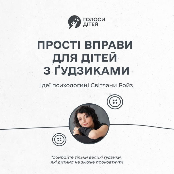 Алгоритм простий: дорослі готують великі ґудзики з чотирма дірками та бортиком, безпечні для використання, і домовляються з дітьми, як і коли їх можна застосовувати.