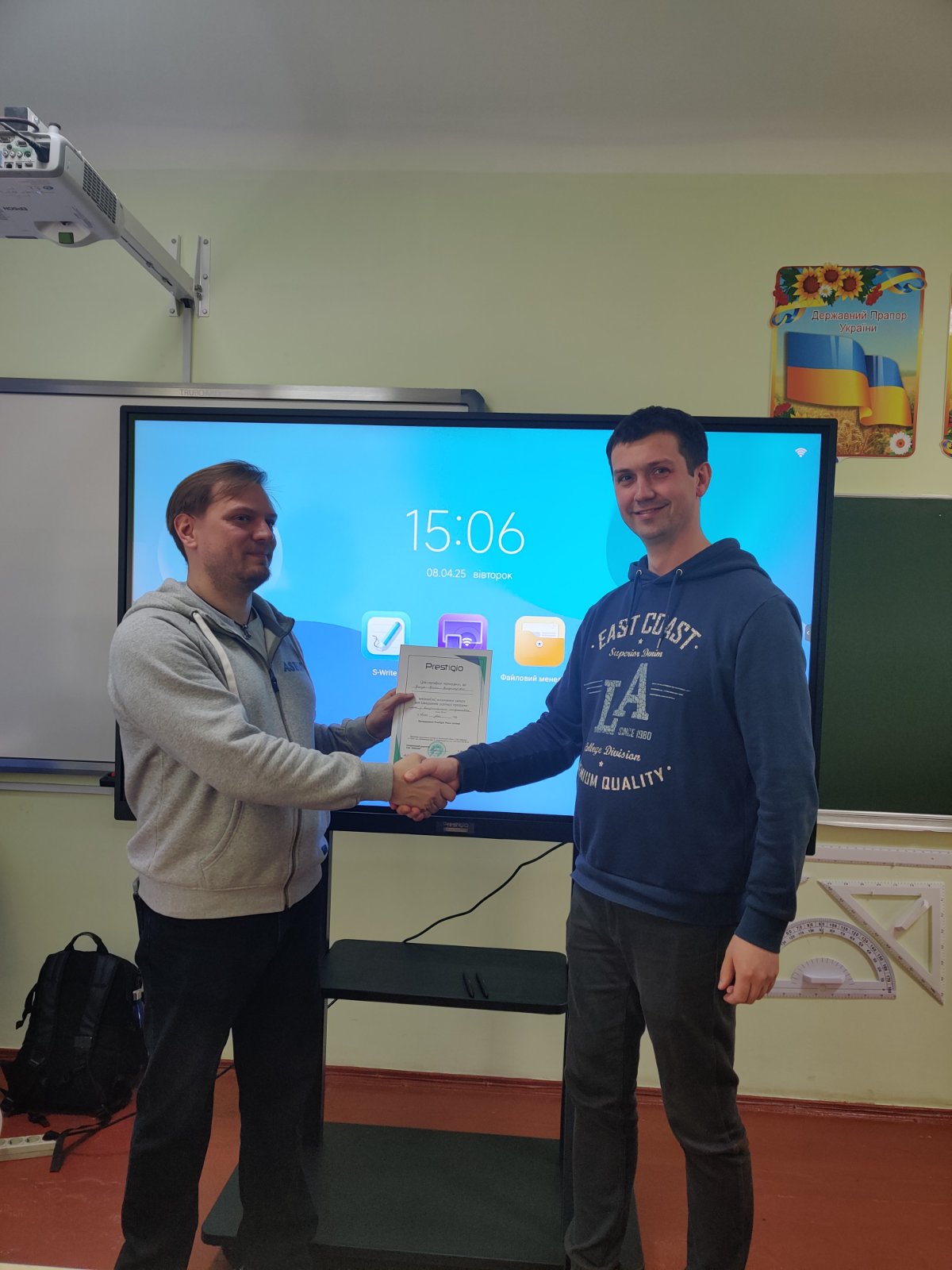 Спікерами заходу виступили Василь Романюк та Денис Онікієнко, які поділилися досвідом та знаннями щодо використання інтерактивного обладнання у навчальному процесі. Вони представили сучасні методики, які сприяють активному залученню учнів до навчання та підвищенню ефективності викладання.