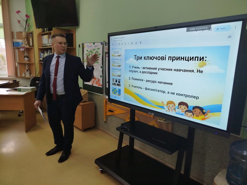 Третім презентував свій досвід Олександр Захарчук (учитель Рівненської гімназії №14) з теми «Розвиток критичного мислення учнів через партнерську взаємодію між учителем і дитиною». Педагоги переконалися, що навчання у змішаних групах, де кожен учень працює відповідно до своїх інтересів і сильних сторін, є ефективним підходом. Адже знання не просто передаються — вони відкриваються у процесі співпраці.